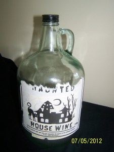 The Haunted House Wine label is a Halloween decoration novelty, but the wine is a Carlos and Rossi. It is a B.L.A.S.T:Museum favorite and is offered to family and friends during any occasion to really keep the party going. Nothing special about this wine except the merriment and good feeling during family time together. B.L.A.S.T:Museum Wineologists simply choose an inexpensive table wine and sometimes it may not be served during the festivities, so it is placed into hiding, then added to another occasion’s list. This Halloween carry over aged four years unintentionally and was supposed to be a Halloween treat, but it was selected for the 2012 July 4th celebration. This glass bottle is a great jug example and is a feature of the B.L.A.S.T:Museum 3 In One permanent collection. It is also a great serving,transportation,and storage vessel.