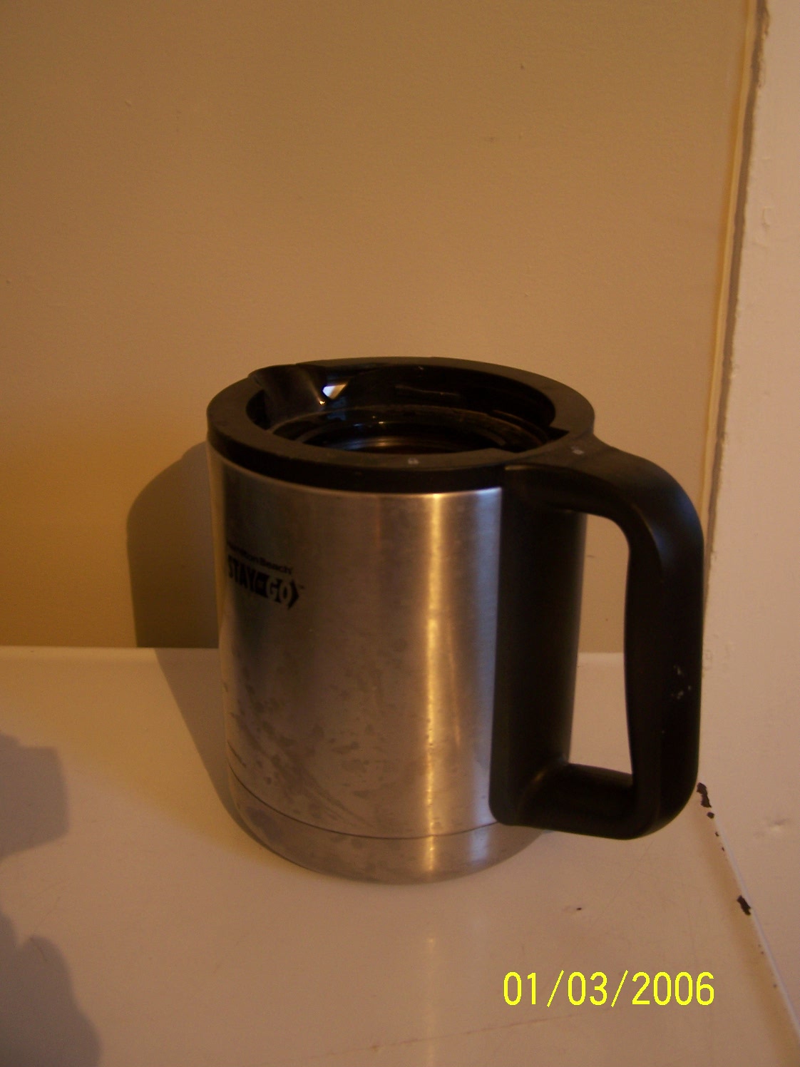This thermal tankard is a modern style blended with historic design. A cross between a tankard and a thermos, with the ability to handle both hot and cold beverages. B.L.A.S.T. Museum Investigators have determined that this one may have also been used as a coffee pot.